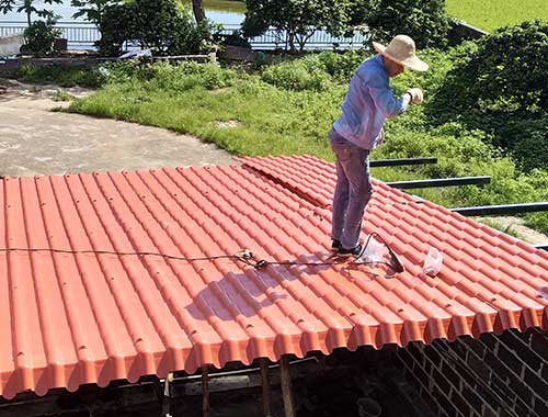 星发树脂瓦经过实验测试,长期暴露紫外光线,湿气,寒热等恶劣条件下,仍然能保持其颜色的稳定性,经久不褪
